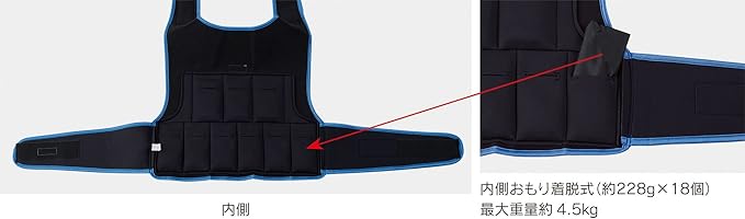 正面と背面になるポケットに入れるおもりの数で、負荷調整できます。