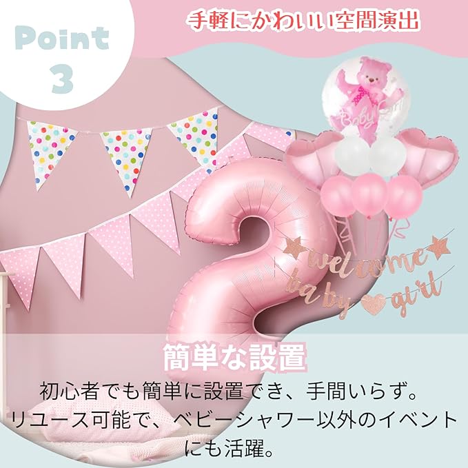 【特別なイベントに最適】赤ちゃんの誕生を祝うパーティーの会場装飾に。 カラフルなバナーやポンポン、風船が揃っており、会場を華やかに彩ります。