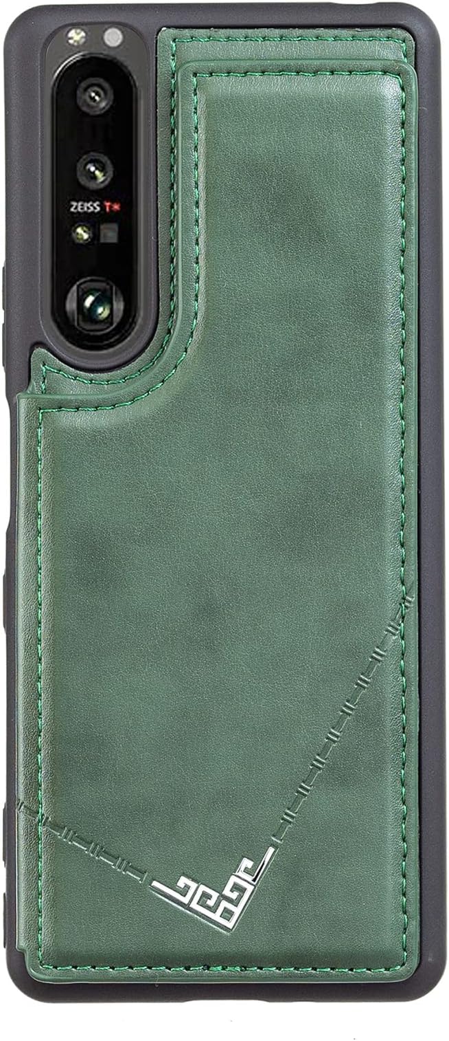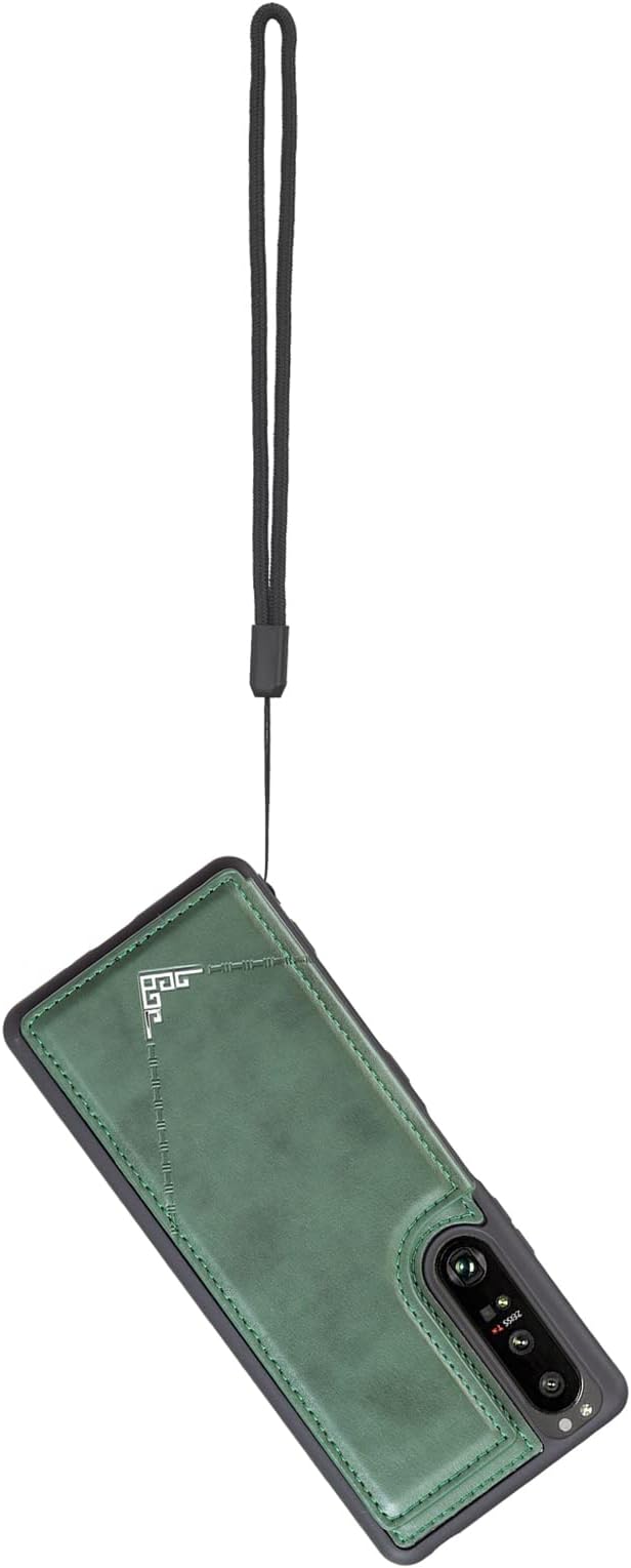 for Xperia 1 III SO-51B SOG03 A101SO エクスペリア 1 III ケース スタンド機能 ケース ICカード収納 ケース カード収納 ケース 背面カード収納 ケース 左と右の電話ケースを反転、防水と防汚電話ホルダー、多機能財布収納付き電話ケース、PUレザーケース、TPUソフトインナーケース (グリーン)