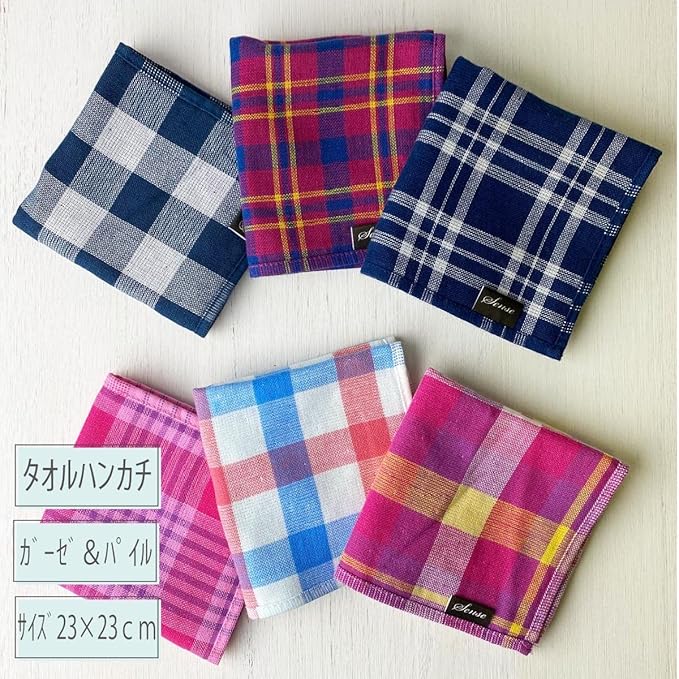 タオルの萩原 ガーゼ & パイル チェック柄 タオルハンカチ 6枚組 garze-th-6p