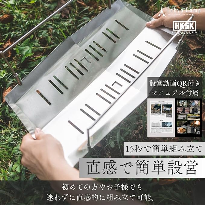 Tokyo Camp 焚き火台 HAKOSUKA 折りたたみ式 A4収納 コンパクト 軽量 簡単設営 薪割り不要 ステンレス製 ソロ キャンプ ファミリー対応 バーベキューコンロ グリル