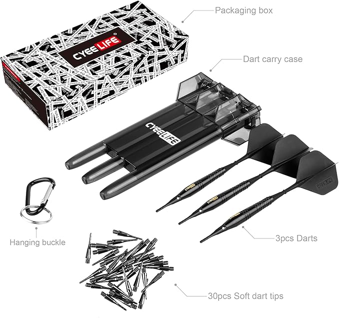 CyeeLife 16g 純銅のソフトチップダーツセッ Soft tip Darts(Black)