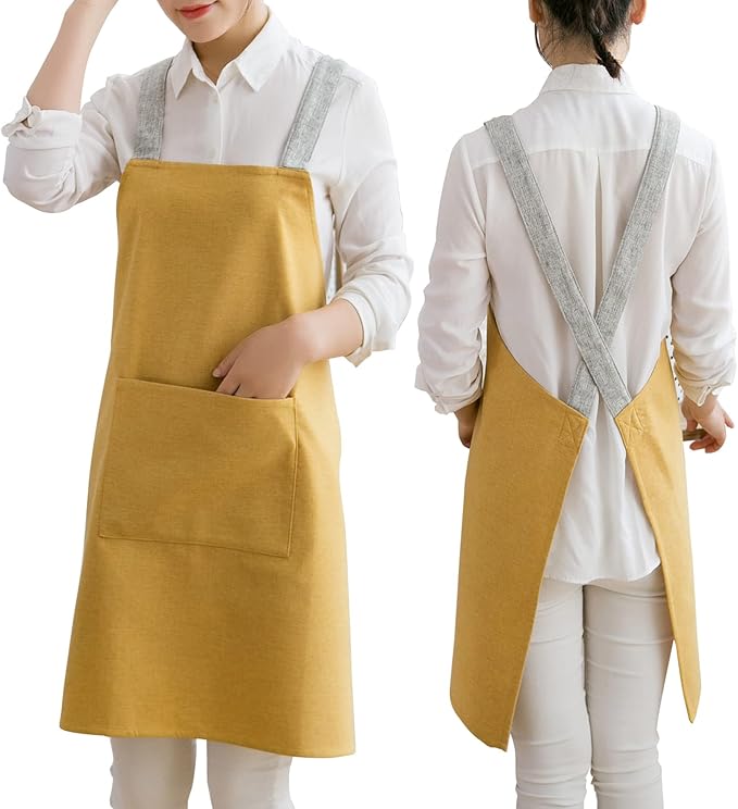 [JIAHU] エプロン レディース おしゃれ かわいい ストライプ かぶるだけの簡単着脱 体型カバー 北欧 ポケット2 撥水 はっすい レストラン 料理 キッチン ワークエプロン シワにならない 母の日 プレゼント