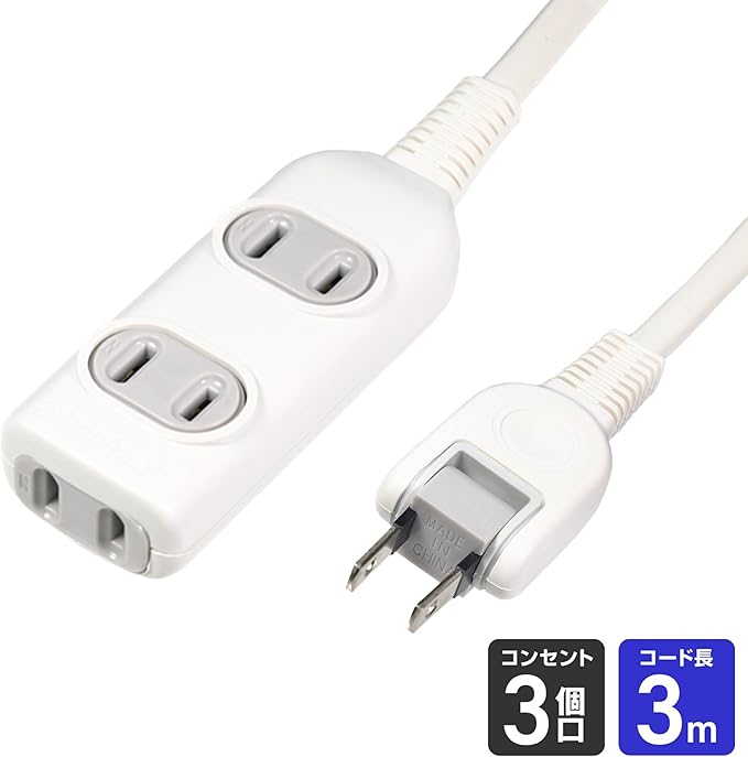 エルパ (ELPA) EDLPコード付タップ 電源タップ 延長コード 125V 3m 3個口 ホワイト LPT-303N(W)