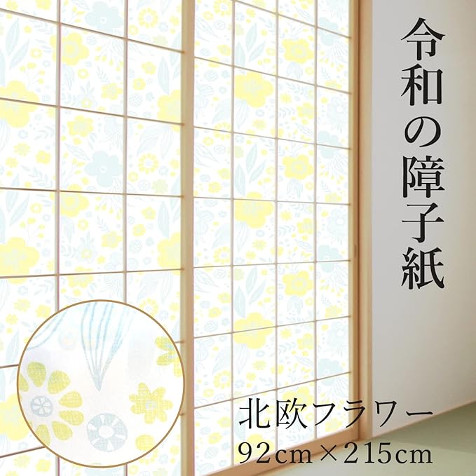 菊池襖紙工場 令和の障子紙 北欧フラワー RS005 ホワイト・イエロー