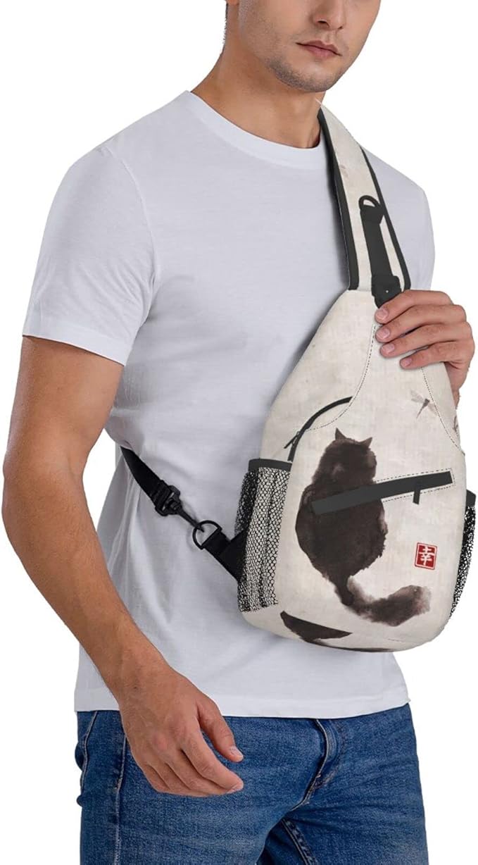 [DADABULIU] ボディバッグ 斜め掛け 和風 和柄 猫 絵 ネコ柄 ショルダー バック メンズ レディース ウエストポーチ 軽量 防水 大容量 通勤 通学 ハイキング 旅行