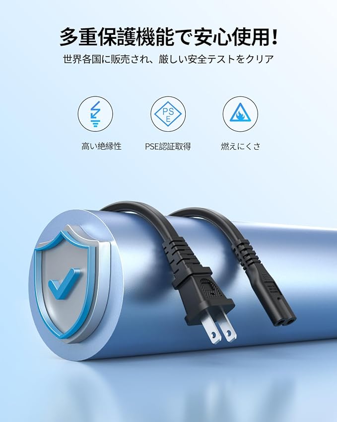 【安全性保証・PSE認証】過熱・過電流・短絡保護などの安全機能を内蔵し、日本のPSE認証を取得済み。毎日のご使用でも安心してお使いいただけます