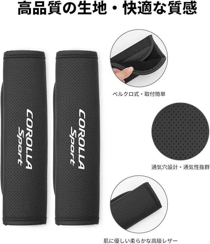 【専用ロゴ・おしゃれな設計】このシート ベルト 保護カバーは COROLLA Sport 専用ロゴで、ご愛車に合わせやすい洗練なデザインが特徴です。パッケージ内容:シートベルトカバーX2本。カラー:ブラック。2本セットで運転席と助手席に取り付けできます。適用車種:カローラ スポーツ 210系 ハイブリッド G Z グレード対応します。