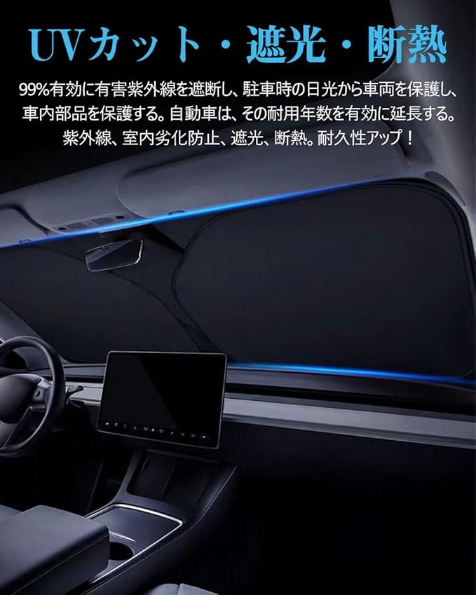 【猛暑対策・内装保護】このサンシェードは 内装劣化防止、ダメージや経年劣化を防ぎます。駐車時の大事な車を太陽光による損傷やハンドル焼け、ダッシュボードなどの樹脂部分の日焼けからしっかりご愛車を守ります。駐車の度に気持ちをより涼しくしてくれます。