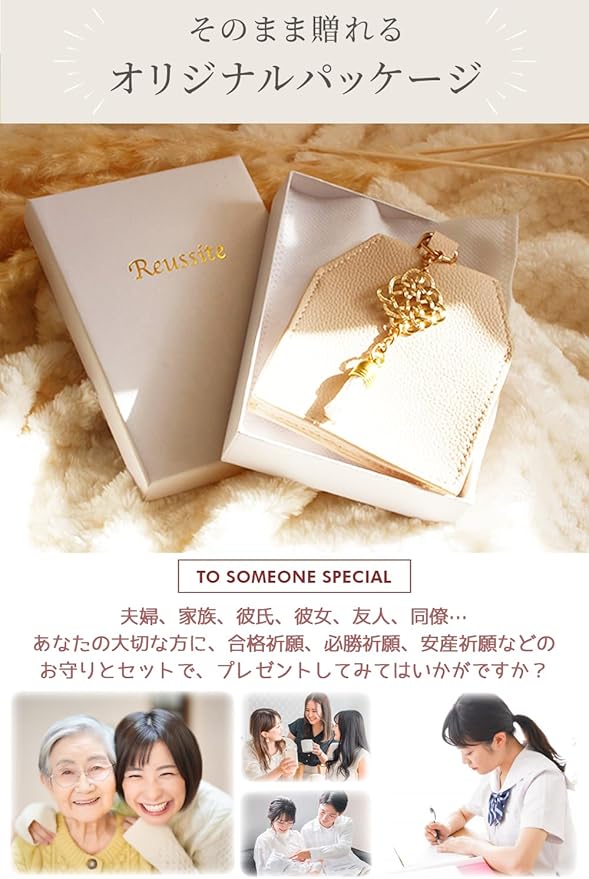 Reussite お守り お守り袋 お守りケース お守り入れ キーホルダー レディース お守りカバー オシャレ 可愛い 携帯/お守りホルダー (ベージュ)
