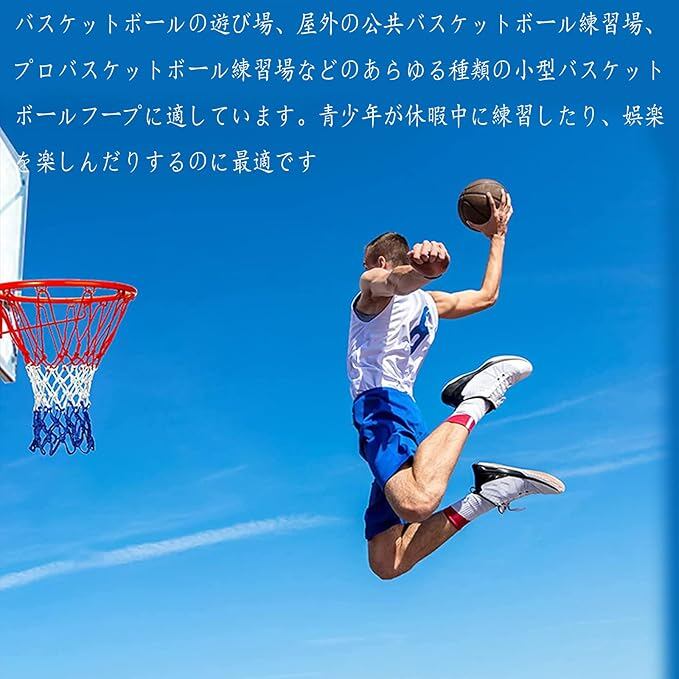 【用途】ホームコート、学校の遊び場、公園、レクリエーションセンター、バスケットボールコートに適しています。バスケットボールネットは、バスケットボールの遊び場、屋外の公共バスケットボール練習場、プロバスケットボール練習場などのあらゆる種類の小型バスケットボールフープに適しています。青少年が休暇中に練習したり、娯楽を楽しんだりするのに最適です。