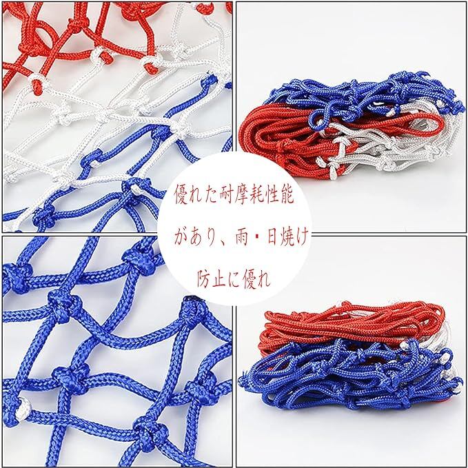 ALLVD バスケット ゴール ネット 7mm幅 12ループ カラフル ファミリースポーツ おしゃれ バスケット リング バスケット ネット 標準バスケットボール用 屋外屋内 適用 レジャー ファミリースポーツ (紅白ブルーの)