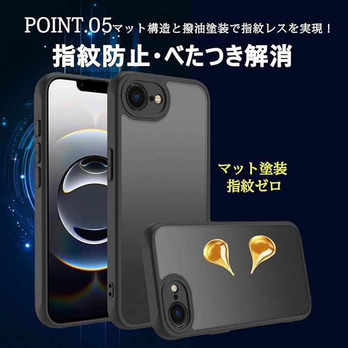 【半透明美学・マットな仕上げ】マット感半透明デザインにより、iPhone 16e の本来の美しさをほのかに引き立てます。マットな質感で羽毛のような触り心地を楽しむことができ、快適で薄いグリップ感を提供します。また、耐久性と耐摩耗性にも優れています。表面には指紋防止ナノオコーティングを施しており、指紋つく心配はありません、汚れを防ぐ効果を高めました。高級感と神秘感が溢れ、かっこいいリンゴロゴが見えます、