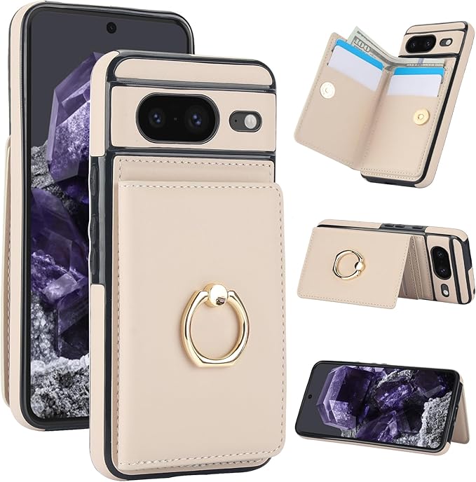 Google Pixel8 ケース 手帳型 グーグルピクセル8 ケース 手帳型 ピクセル8ケース Googleピクセル8ケース 財布型 リング付き 背面カード収納 スマホケース Pixel8 携帯カバー グーグルピクセル8 PUレザー スタンド機能 Pixel8カバー リング 耐衝撃 シンプル おしゃれ 耐衝撃 RFIDブロック機能 ぐーぐるピクセル8 6.2インチ 2023 - オフホワイト