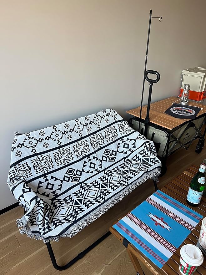Peel Forest キャンプ ブランケット アウトドア メキシカンラグ おしゃれ テント カバー 黒と白90 180cm