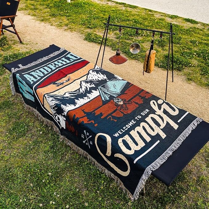 テーブルクロスとして活用しているキャンパーもたくさんいます。アンティーク調のキャンプ用品を置くことで、気分はネイティブアメリカン!
