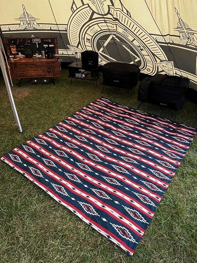 Peel Forest 民族柄, マルチクロス,ピクニック,レジャーシート,キャンプ,アウトドア オルテガ柄,ネイティブ柄,ベッドカバー ネイビー (145X200cm)