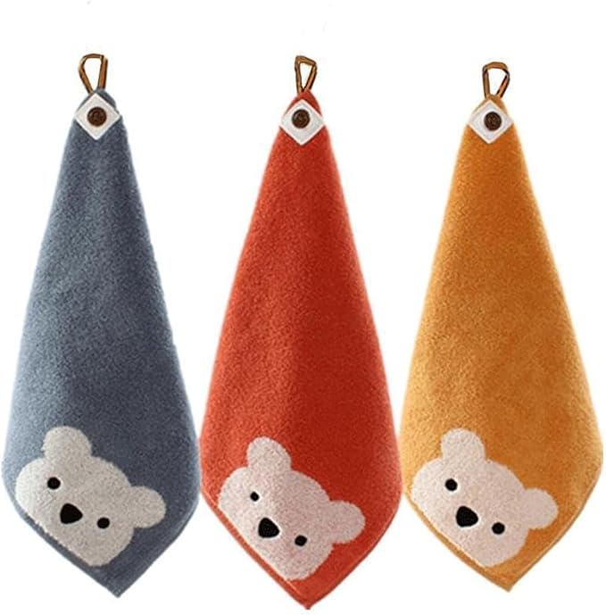 NEW ループ付き 子どもタオル くまさん ハンドタオル 入園入学準備 幼稚園 保育園 3枚 セット 無地 ストライプ