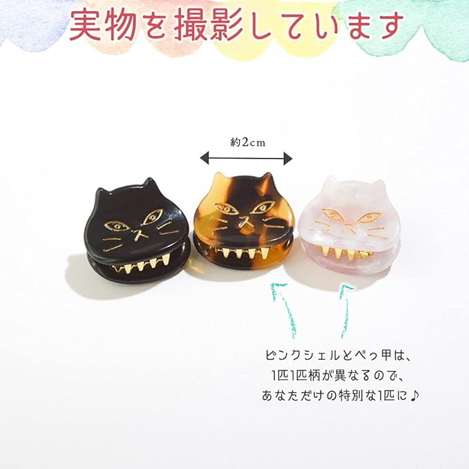 moin moin 猫 ヘアクリップ 2つセット べっ甲・黒/クリップ 三毛猫 黒猫 ねこ ピン アクセサリー 2106brch9