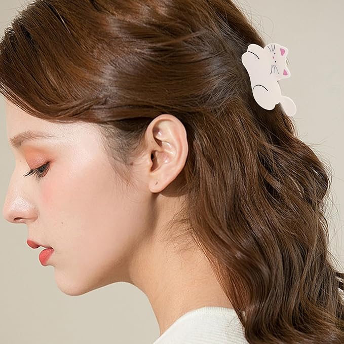 FRCOLOR バンスクリップ 猫 ヘアクリップ ヘア シンプルレディース フランスクリップ 大きめ しっかりまとまる シンプル 無地 髪飾り 髪留め クリップ
