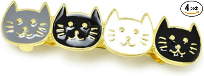 [Ree&Mee]ヘアクリップ 4匹にゃんこ ヘアバレッタ 猫 バレッタ 髪留め ヘアアクセサリー ネコ ヘアーアクセサリー ネコ グッズ ヘアー クリップ (Grey)