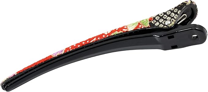 バレッタ上部(プラスチック製)を美しい和柄のちりめん生地でくるんだアクセサリー感覚の髪留めです。【長さ約12.5㎝、高さ約1.8cm、横約1.5cm】