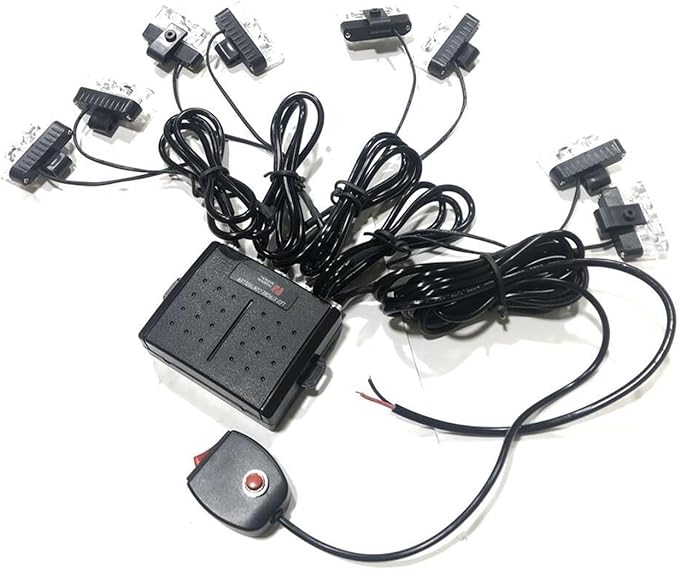 【DIYカスタマイズ】キットには、2LEDライトが8個、コントロールボックス、スイッチ、電源コードが含まれています。レッド&ブルーはライト各4個ずつ。出荷前に点灯確認済。動作電圧:12V【バリエーション】 ホワイト、 アンバー、レッド ブルー。※取り付け場所により、防水加工をしてください。※説明書は付属していません。