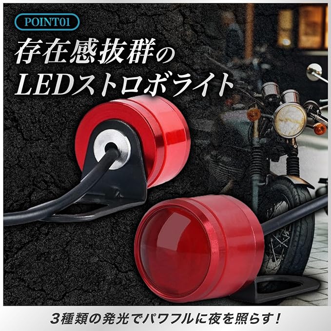 ✅【2連LEDストロボ】夜道を明るく照らす!丸形のLEDストロボライトがあなたのバイクをオシャレに装飾。防湿・防水設計で、雨天でも輝き続けます。装着は簡単、パーツのカスタムに最適なアクセントです。