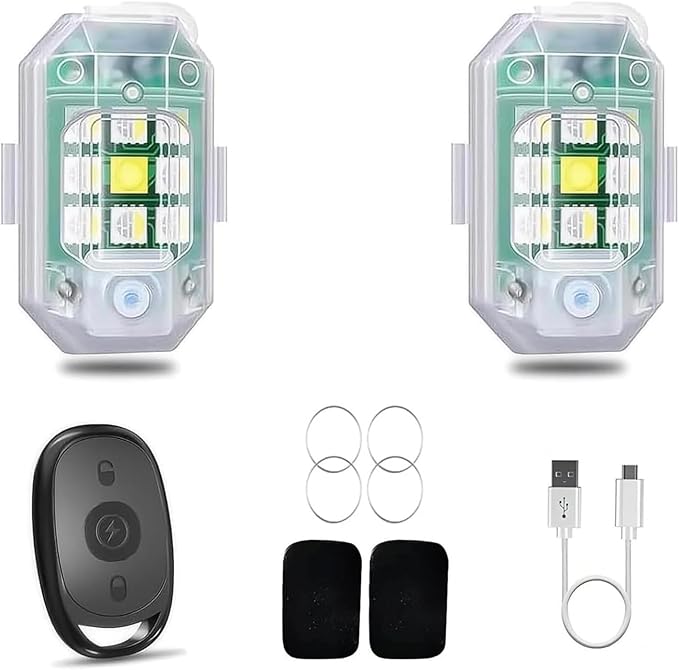 GOOMAND ワイヤレス LEDストロボライト(リモコン付き)非常信号灯 飛行機 7色切り替え フラッシュライト USB充電式 LED衝突防止 点滅 警告灯 多用途 高輝度 防水 防塵 ドローン・バイク・自転車・車対応 2個セット