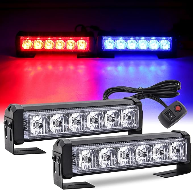 LED ストロボライト 超爆眩 12V 点滅ランプ 2 x 6LED 2 in 1 警告灯 緊急点滅警告 フラッシュ 点滅+常時点灯 2色切り替え 高輝度 スイッチ付き トラック 救急車 バス 車用 汎用 (レッド&ブルー)