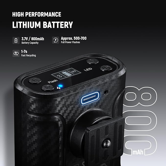【8つのフラッシュ出力オプションと800mAhバッテリー】ミニカメラフラッシュストロボは1/1から1/128までの8段階の出力レベルからフラッシュの強度を簡単に調整できます。柔らかな光から高出力の照明まで、シーンやクリエイティブなニーズに合わせて照明を調整できます。内蔵された800mAh充電式バッテリーは500-700回のフラッシュ撮影に対応し、頻繁に充電なしで長時間撮影が可能です。外出先での撮影やモバイル撮影に最適です。
