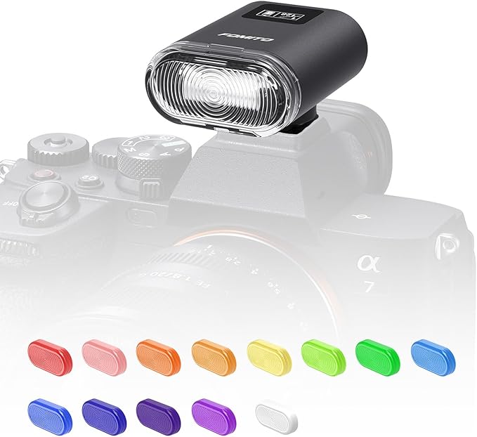 FOMITO カメラフラッシュ 撮影用ミニフラッシュMiniフラッシュスピードライト GN12 ストロボ 小型 カメラフラッシュストロボ スピードライト ストロボライト Type-C充電 ユニバーサルシングルコンタクト標準のホットシューマウント付き 12個カラーフィルター付属 保証1年(黒い‐5㎝)