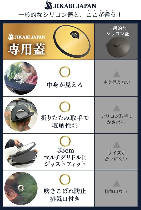 ✅【 ほぼ全ての33cmマルチグリドルに対応 】 JIKABI JAPANの純正品でありながら、汎用性の高さも魅力。ほぼ全ての33cmマルチグリドルに対応する設計で、限定商品の枠を超えて多くのユーザーにご使用いただけます。