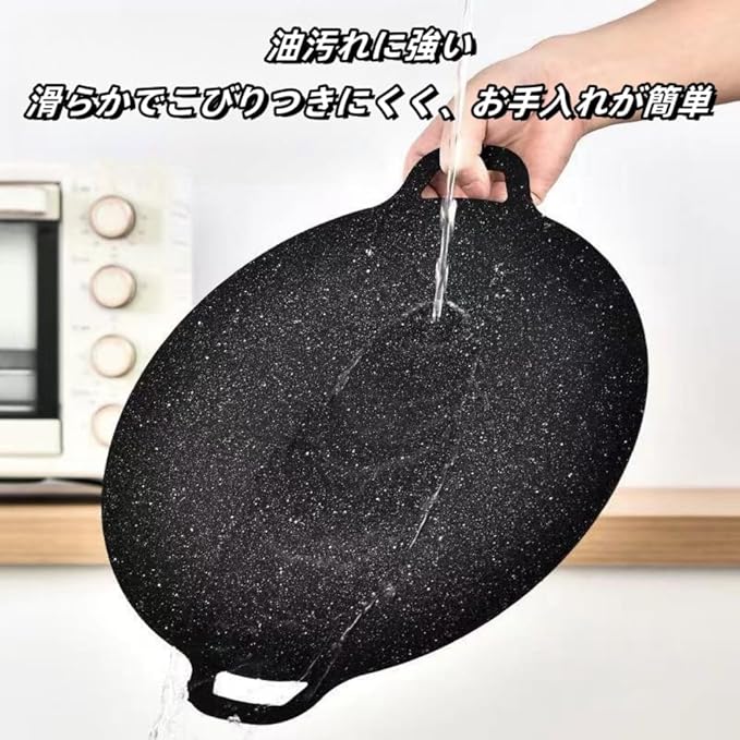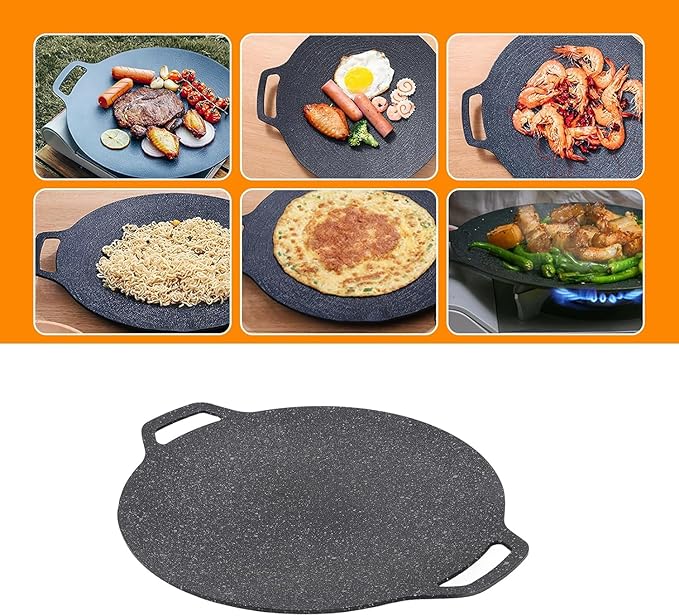 【幅広い用途】このノンスティックフライパンは様々な料理に適しています。豚バラ肉、チヂミ、チャーハン、カルビ、炒め肉など、あらゆる焼き肉を調理できます。また、スープ料理もできます。屋内でも屋外でも、素早く料理を作ることができるので、キャンプに行かなくても、自宅でキャンプ気分を味わうことができます。
