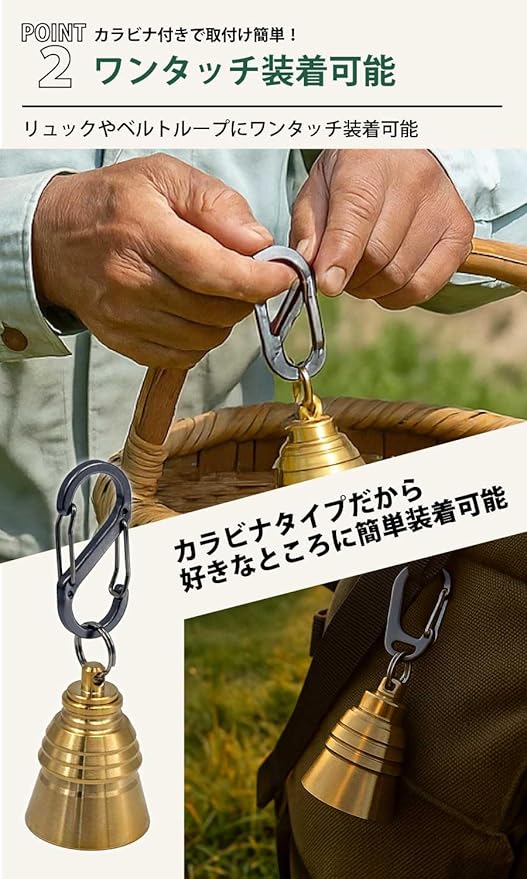 消音機能: 消音機能付きの熊鈴で、必要に応じて音を調整可能