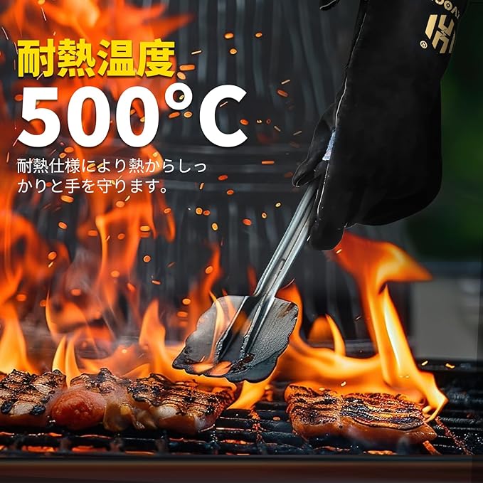 【優れた耐熱性】HZXVOGENの耐熱グローブの耐熱温度は500℃この耐熱手袋は、溶接作業や工場作業にも最適です。高温に耐えれ、更に耐火性があり、高温の金属や機械部品を扱う際に手と腕を守ります。