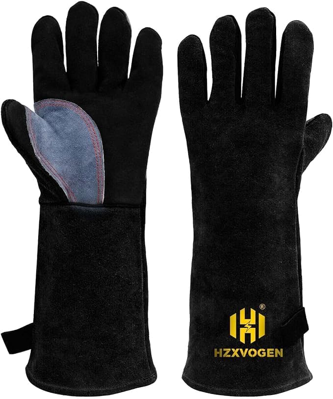 [H HZXVOGEN] 耐熱グローブ 牛革 溶接手袋 耐熱500度 キャンプグローブ 溶接 耐火手袋 BBQ ストーブ 焚き火台 薪ストーブ アウトドアなど用 作業革 男女兼用