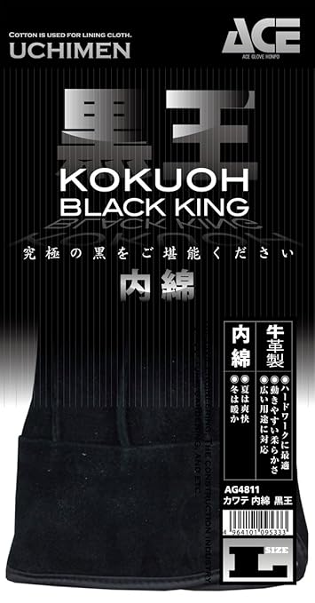 [ACE] 作業手袋 ブラック 牛床革手袋 オイル 外縫い 内綿 Lサイズ AG4811 黒王