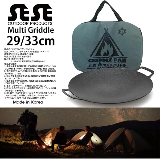 SESE 鉄板 マルチグリドル 33cm クッションバック付き キャンプやアウトドアで大活躍! アルミニウム ブラック 円形