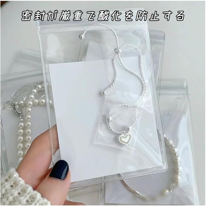 【サイズ数量】50個入り透明ジュエリー収納袋、これらのジュエリージッパー袋は約8X12cmです。