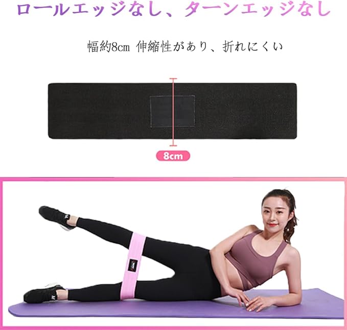 【多用途】スクワット、ランジ、クランチ、ストレートレッグレイズなど、さまざまなエクササイズに適したエラスティックバンド。ヒップアップ、脚のトレーニングに役立ち、特にお尻やグルート(大臀筋)のトレーニングに効果的です。