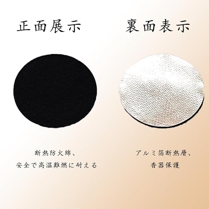 【簡単な使用方法】黒い面を上にして、この防火綿にお香やタワー型お香を置くだけで簡単に使用できます。再利用可能で、繰り返し使用しても形状が崩れず、長持ちします。