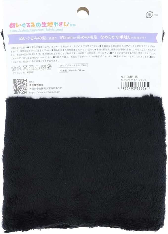 清原(KIYOHARA) 推しぬい ぬいクロス5mmボア ぬいぐるみ用 生地 巾70cm 30cmカット BK ブラック NUIF-04C