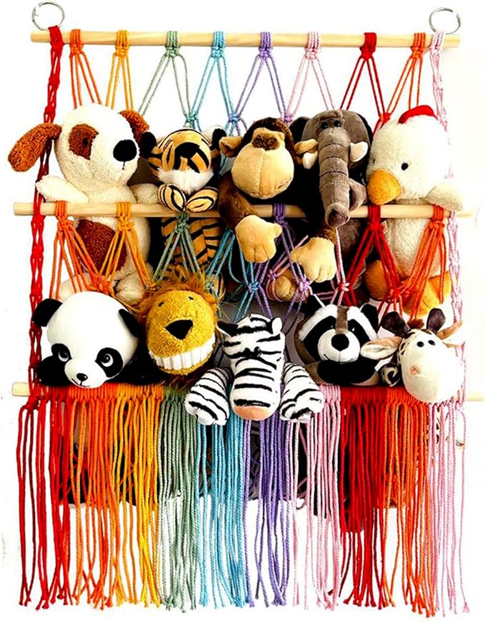 Percy’s Caravan ぬいぐるみ 収納 ハンモック 吊り下げ収納 壁掛け ピンフック付き ディスプレイ おしゃれ 省スペース ぬい活 推し活 人形 部屋 北欧風 インテリア ウォールポケット (レインボー)