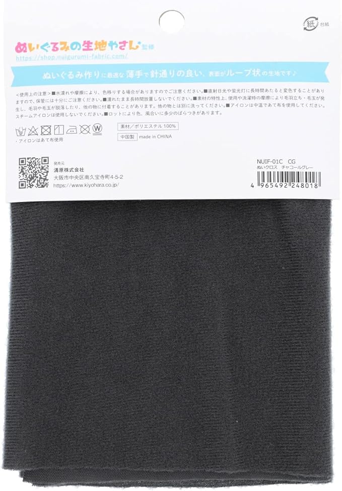 清原(KIYOHARA) 推しぬい ぬいクロス ぬいぐるみ用 生地 巾65cm 30cmカット CG チャコールグレー NUIF-01C