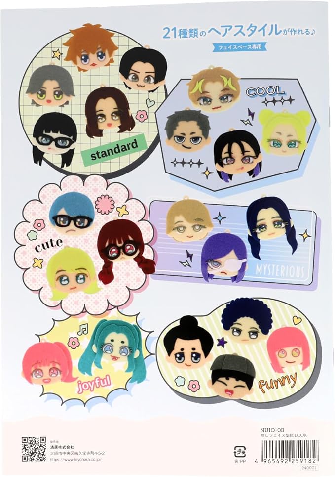 清原(KIYOHARA) 推しぬい 推しフェイス 型紙BOOK フェイスベースS専用 21種類の髪型パターン入り NUIO-03
