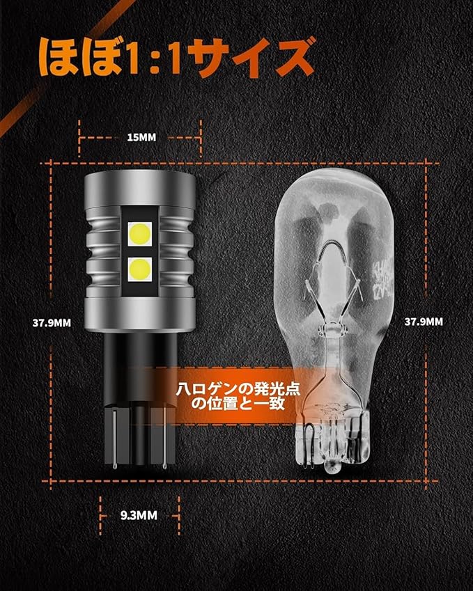 【無極性】製品寸法:38 15mm、純正のT16/T15バルブとほぼ同じサイズで、端子は無極性なので、+ 、-の極性に注意する必要がなく、どんな電極でも点灯もできます。さらに、差し込むだけで使用可能で、初心 者でも取り付けが簡単で、お使い勝手が良いです