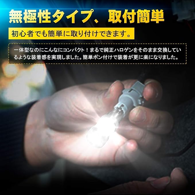 【無極性&1:1サイズ】ハロゲンサイズ、極性フリーで、取付は簡単!原箇所のまま差し込むだけで取付ます。加工必要がないです。