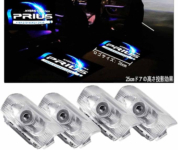 Ltsplay プリウス30系 車用カーテシランプ 工具付 カーテシライト LEDロゴ投影 50系プリウスα ドアウェルカムライト カーテシ 車用ドアランプ 角度調整機能付き 4個セット nz511 zvw30 Prius 4