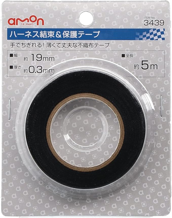 エーモン(amon) ハーネス結束&保護テープ 約19mm 5m 3439 黒
